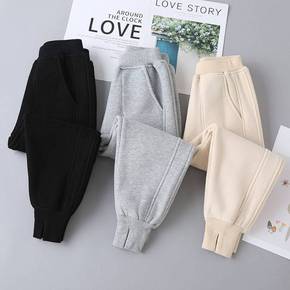 男童运动裤子秋冬季加绒加厚女宝宝长裤束口裤薄绒儿童...