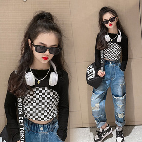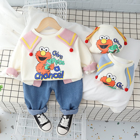 2022秋季新款韩版卡通芝麻街女童大翻领卫衣牛仔裤...