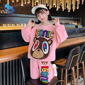 女童套装2022年新款春秋宝宝洋气春装小熊运动卫衣...