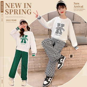 女童春装套装2022新款洋气儿童装网红时髦春秋卫衣...