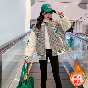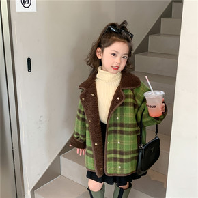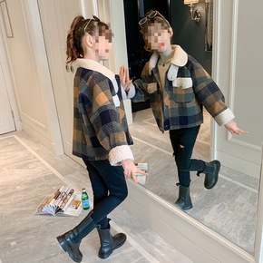 2022新款男童女童加绒格子羊羔绒外套中大童帅气休...