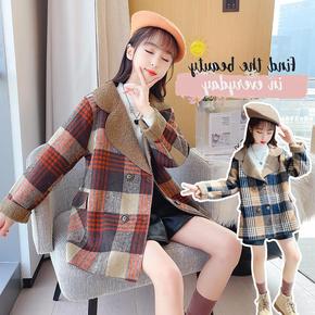 女童冬季复古夹棉加厚格子西服外套2021新款中大童...