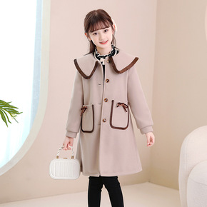 女童宽松呢大衣中大童外套2022秋冬新款保暖外套...