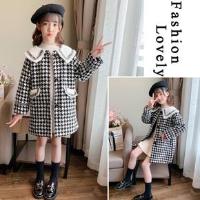 女童千鸟格加厚毛呢外套秋冬装2022新款女孩洋气韩...