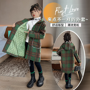 2022冬季新款女童夹棉毛呢外套韩范童装中大童女装...