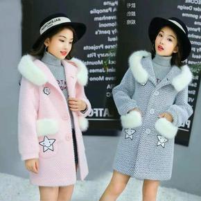 女童外套中大童毛呢雪貂绒大衣儿童棉厚洋气中长款冬...