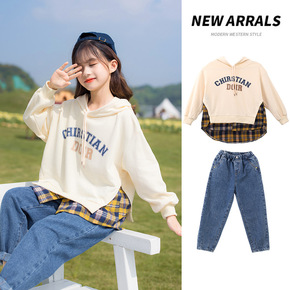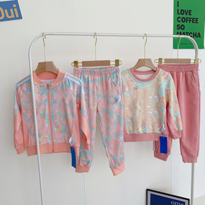 运动套装2021秋装新款韩版中大男女童连帽卫衣+运...