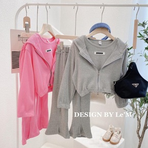 洋气童装2022秋季新款女童时髦华夫格连帽外套背心...