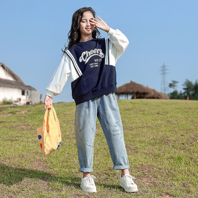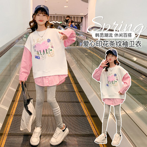 女童卫衣春装2022新款中大童上衣儿童春季韩版拼接...