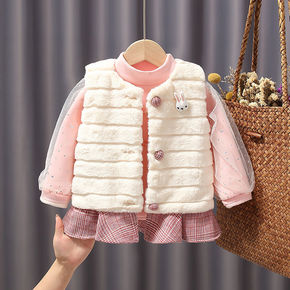 女童马甲2021新款秋冬款儿童羊羔绒毛马甲韩版可爱...