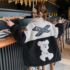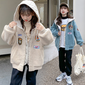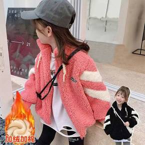 女童冬装外套加绒加厚羊羔毛连帽保暖棉衣女大童202...
