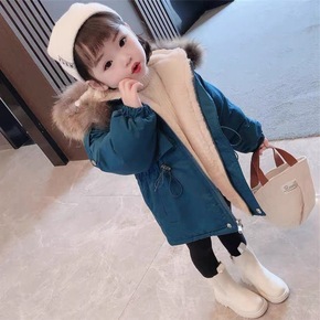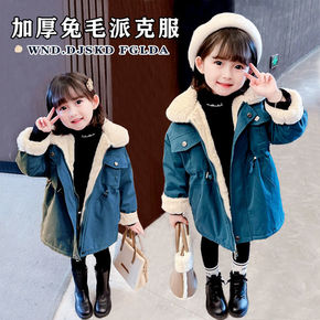 女童加绒派克服冬装洋气儿童加厚外套女宝宝棉衣加厚收...