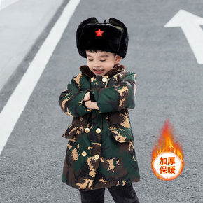 儿童迷彩军大衣男童加绒加厚中长款小孩棉袄女宝宝婴幼...
