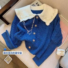 克莱因蓝毛衣儿童 炸街女童针织开衫外套时髦春秋儿童...