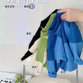 克莱因蓝毛衣儿童 炸街克莱因蓝毛衣女冬季2021新...