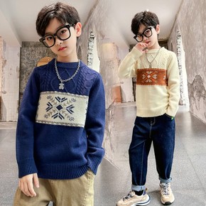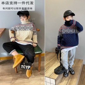 小孩高领毛衣男童毛衣加厚高领冬季2021新款儿童套...