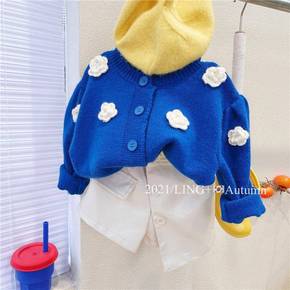 克莱因蓝毛衣儿童 炸街韩国童装女童毛衣外套2021...
