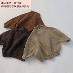 男童高领毛衣宝宝冬装洋气百搭小童纯色加厚针织打底衫...