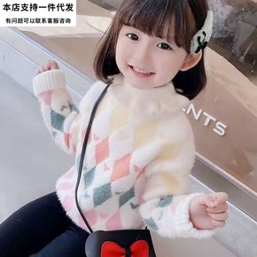 女童针织毛衣2022亲肤貂绒半高领加厚打底衫宝宝冬...