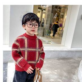 克莱因蓝毛衣儿童 炸街男童格纹毛衣2021新款儿童...