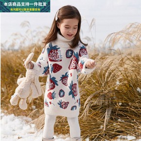 女童毛衣中长款秋冬2022新款洋气儿童长袖毛线上衣...