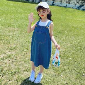 女童2021新款夏装牛仔背带裙套装韩版时髦洋气小女...