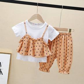 女童套装夏季2021新款女宝宝洋气背带裙两件套女孩...
