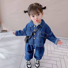 女童春装洋气套装儿童裙子春秋小童女宝宝牛仔外套时髦...