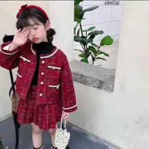 女童套装女童小香风套装裙2022新款洋气毛呢外套冬...