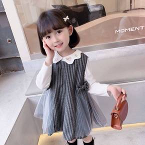 女童春秋套装洋气女宝宝娃娃领打底衫儿童韩版背心网纱...