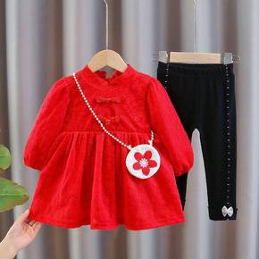 儿童套装冬款女童秋冬款加绒套装2021新款女宝韩版...