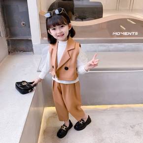 女童西装套装秋装2021新款春秋洋气网红女宝宝小童...