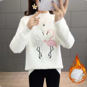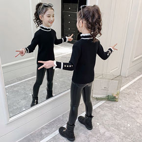 女童毛衣一体绒加厚打底衫百搭纯色立领套头女宝水貂绒...