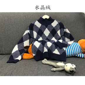 男童高领毛衣套头圆领秋冬款男孩水晶绒中大童儿童洋气...