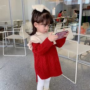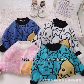 秋冬季女大童毛衣冬一体绒加绒加厚保暖2-5岁女孩小...