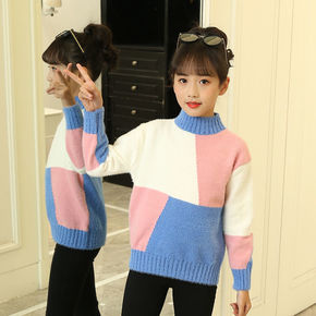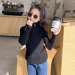 女童毛衣秋冬套头韩版洋气儿童宝宝外穿针织衫半高领时...