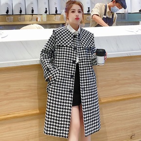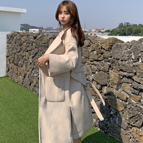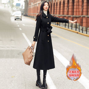 毛呢外套女中长款2019秋冬季新款韩版收腰过膝大毛...