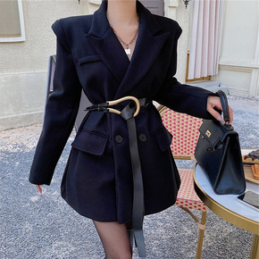 2019新款职业装毛呢外套女中长款加厚加棉售楼部工...