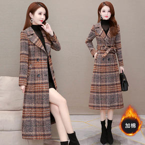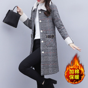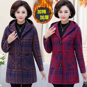 格子毛呢外套女2021冬新款宽松显瘦加厚夹棉妈妈装...