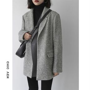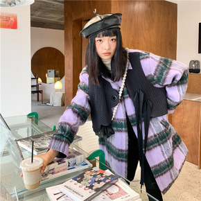 呢子外套女2021秋冬新款小个子韩风chic宽松双...