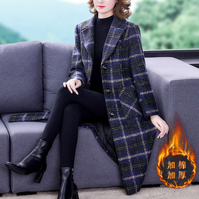 妈妈秋冬加棉毛呢外套新款4050岁春秋中长款气质女...