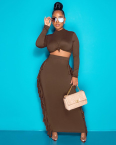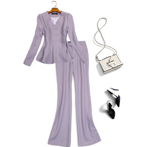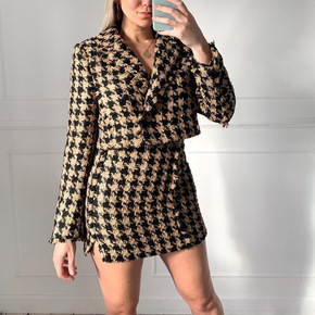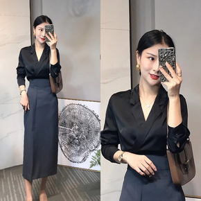 21秋装新款茶歇上衣时尚套装小裙摆V领西装高腰显瘦...