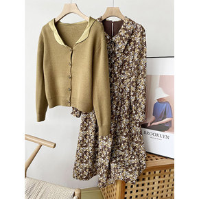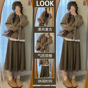 早秋韩版气质时尚小香毛衣加裙子两件套装女2021新...