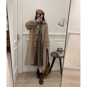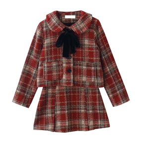 杨娃娃 秋冬复古翻领毛呢中长款大衣外套格子上衣半身...