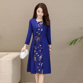 中老年妈妈秋装女2021新款裙子显瘦遮肉微胖大码女...