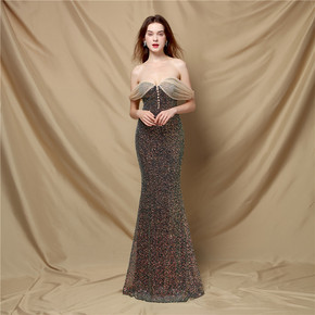 鱼尾晚礼服女2021新款名媛宴会气场女王连衣裙优雅...