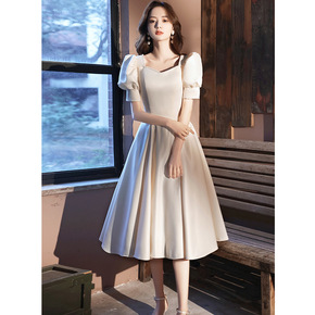 抖音轻婚纱新娘缎面气质法式敬酒服秋冬2021新款复...