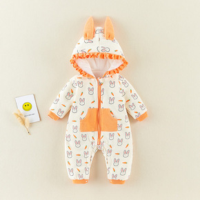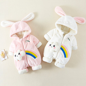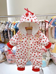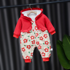 婴儿秋冬夹棉连体衣女宝宝21新款网红洋气外出哈衣新...