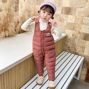 。宝宝背带裤秋冬2020新款女童羽绒服儿童连体衣冬...