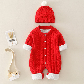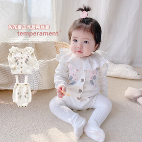 ins童装女宝宝针织哈衣套装婴儿秋冬装棉线包屁连体...